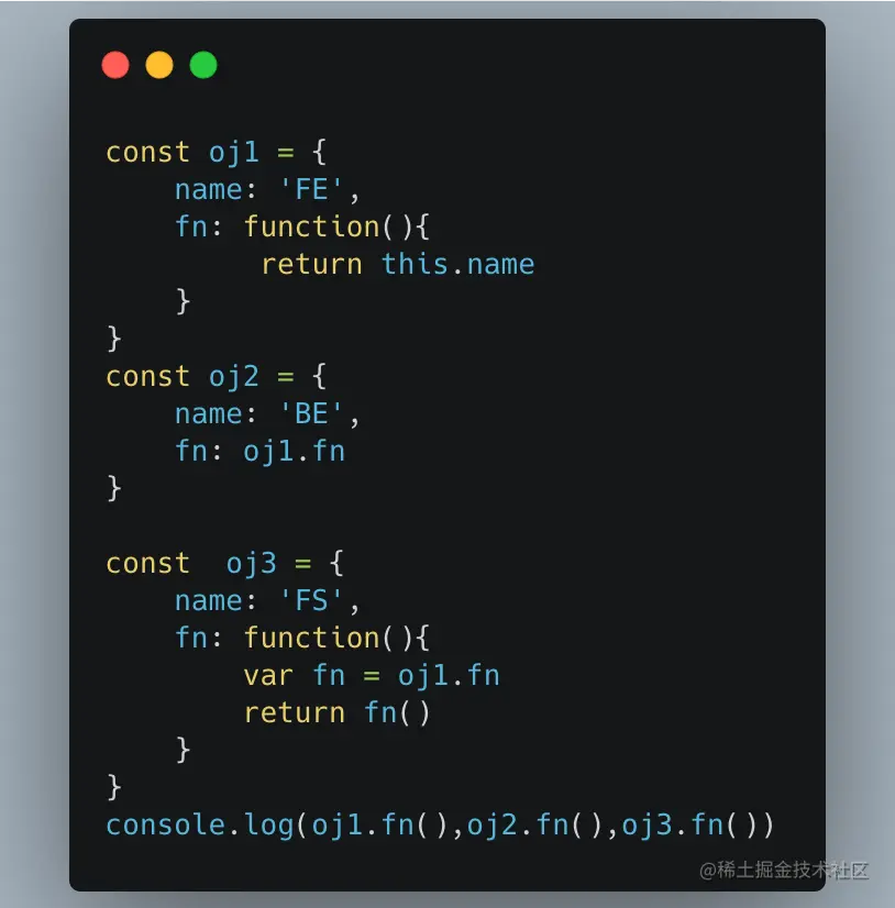 - 第二个的fn虽然拿的是oj1的但是它在调用的时候还是在oj2里面调用的所以输出还是BE