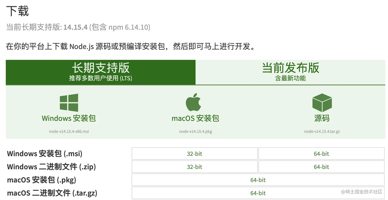 Node.js安装包在Windows平台分为installer和binary两个版本。