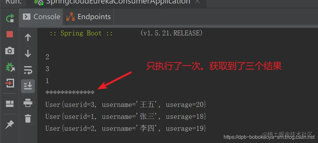 启动服务后访问,查看控制台效果,发现虽然请求了多次service,但是batchUser方法只执行了一次