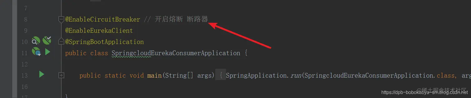 4.启动类修改 启动类中开启@EnableCircuitBreaker注解。