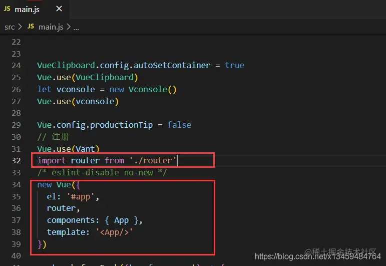 在main.js文件中,将路由导入,更改位置,放置在new Vue的上方(说白了就是靠近点)
