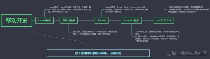 - **后端工程师方向:**熟练掌握PHP后端开发技术,新浪一样的门户网站,淘宝这样的商城系统,斗鱼这种视频直播系统等等;