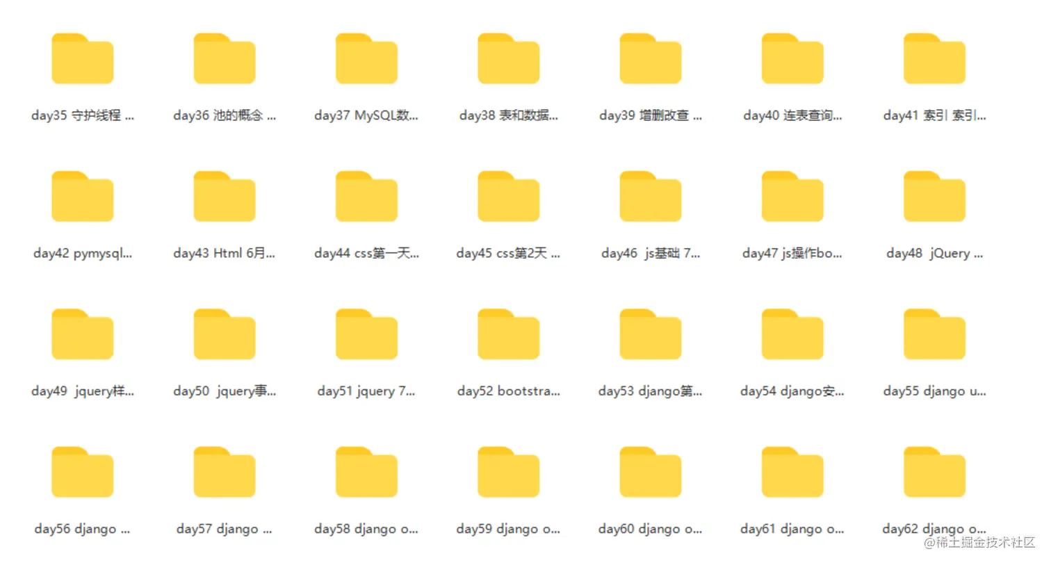 为期137天的Python全套视频教程,总计62G! 里面还有笔记和源码,希望对大家有所帮助哈! 排序有点乱,展示一部分给大家看看~