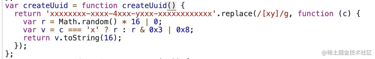 这个方法又调用了 createUuid,这个方法看名字大概就可以猜到是干什么的了