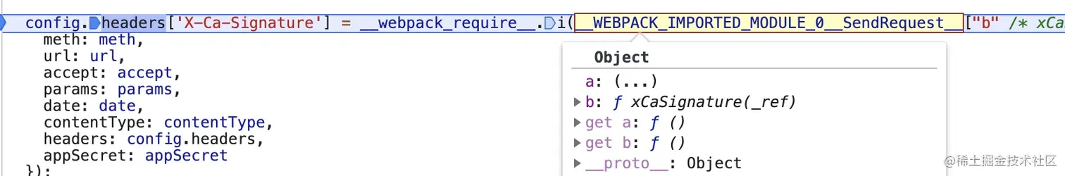 接下来再看 x-ca-signature,这个计算逻辑稍微复杂一点,首先调用了一个 xCaSignature() 方法