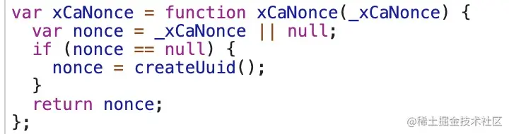 先看下 x-ca-nonce 的计算,是由一个 xCaNonce() 的方法得到的,看下这个方法