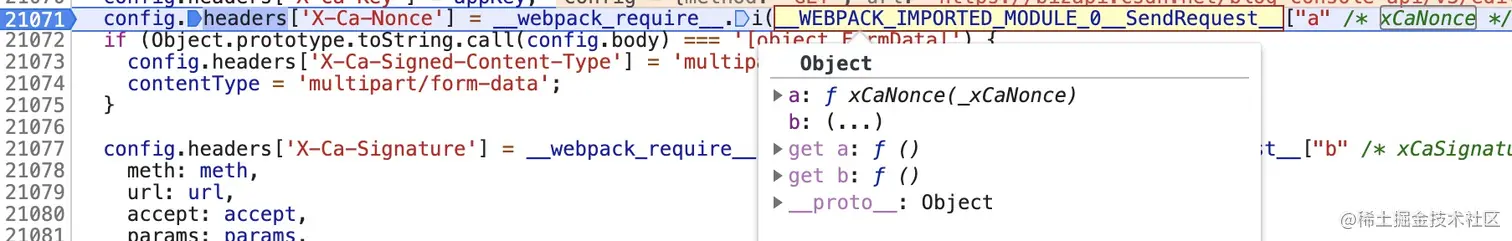 和猜想的一样,x-ca-key、x-ca-signature-headers都是固定写死的,x-ca-nonce 和 x-ca-signature就另有计算逻辑了