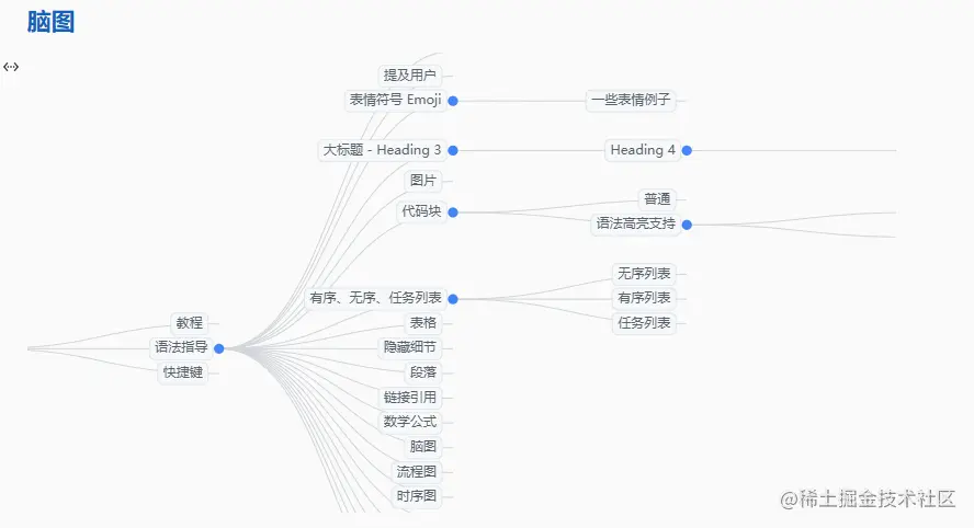 三个平台都是支持传统的markdown的语法的,但是这里要着重说一下思源笔记。就是它支持在Markdown里画思维导图!!!也包括其它高阶语法(时序图、数学公式、甘特图)