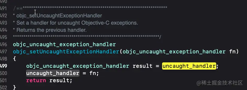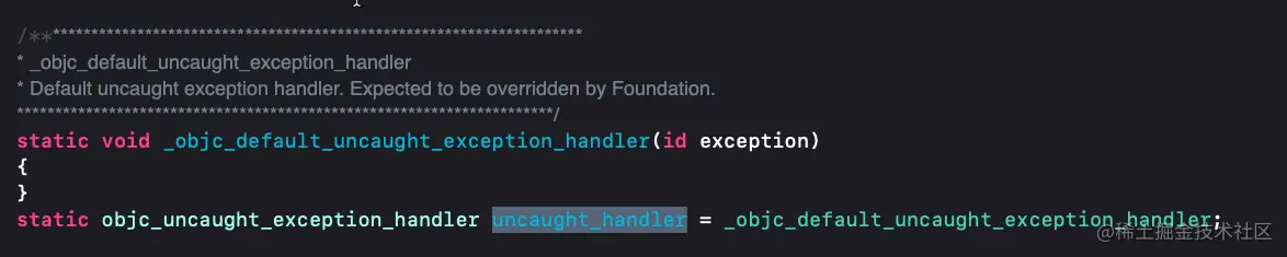 uncaught_handler方法所以应用记得crash的拦截可以通过设置uncaught_handler方法拦截也就是调用objc_setUncaughtExceptionHandler方法cache_init