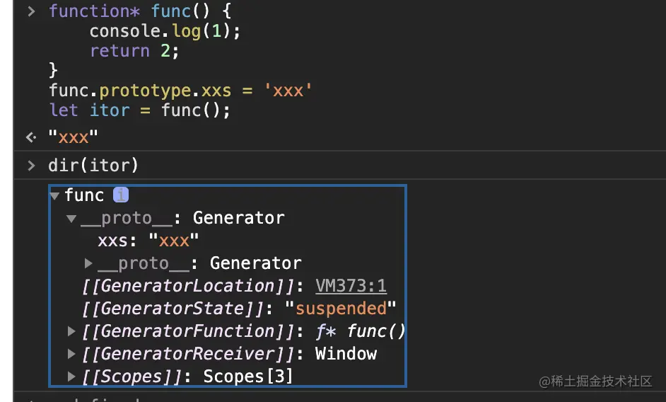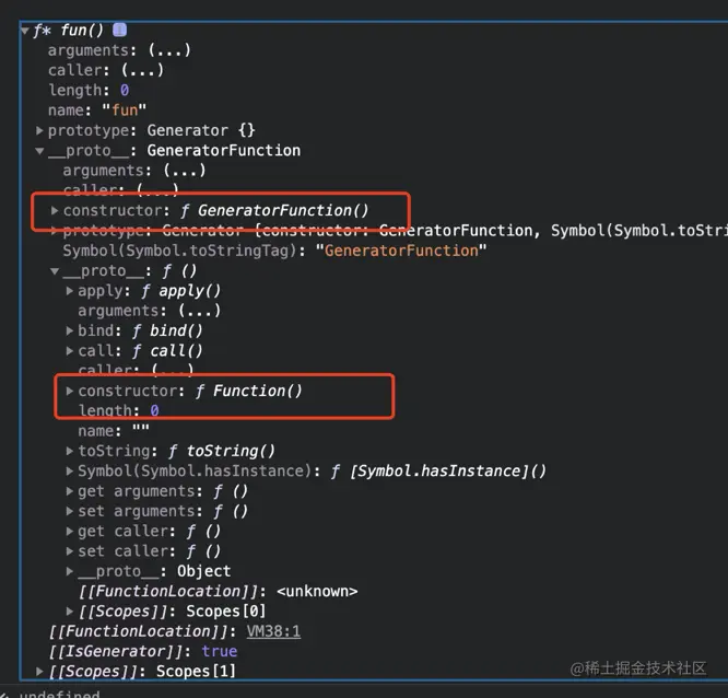 (5)生成器函数是 GeneratorFunction 的实例 生成器函数.proto===GeneratorFunction.prototype -> GeneratorFunction.prototype.proto===Function.prototype