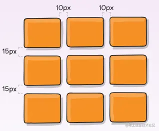 .container{ grid-template-columns: 100px 50px 100px; grid-template-rows: 80px auto 80px; grid-column-gap: 10px; grid-row-gap: 15px;}