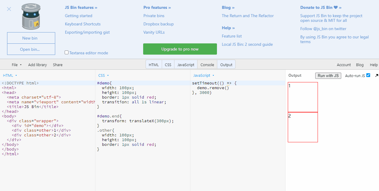transform: translateX(0 => 300px),直接修改会被合并,需要等一会修改,transition过渡属性可以自动脑补中间帧。 -