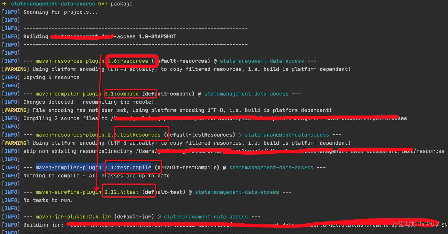 可以看到,compile、test 等比较靠前的阶段也都被执行了。