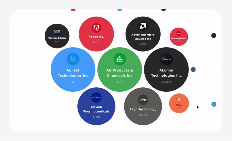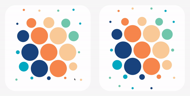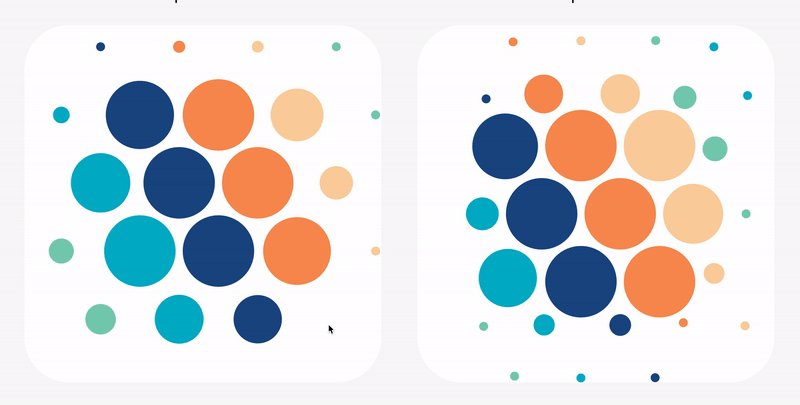 这个特性是我用自己的想象力想象出来的一个概念 —— Apple 的气泡布局不一定会展示它。尽管如此,我想通过将远处的气泡吸引到中心区域来进一步提高气泡之间的的紧凑性。