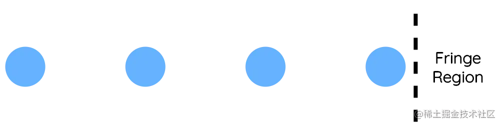 如下图所示,UI 可以分为三个同心区域:center(中心),fringe(边缘),和 outer(外部区域)。在针对气泡的大小和位置在屏幕上的变化进行建模时,前两个区域至关重要。同时在针对气泡滑动的所有情况时,如果某个区域包含该气泡的中心圆点,则该气泡被判断为在该区域内。