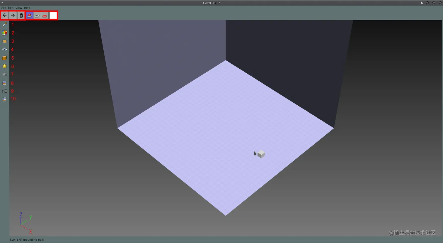 类似传统的编辑器软件,界面中间区域是进行体素绘制的部分,点击鼠标左键并拖动进行笔刷操作。