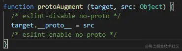 protoAugment ⽅法是直接把 target.proto 原型直接修改为 src,实际上就把value的原型指向了arrayMethods。