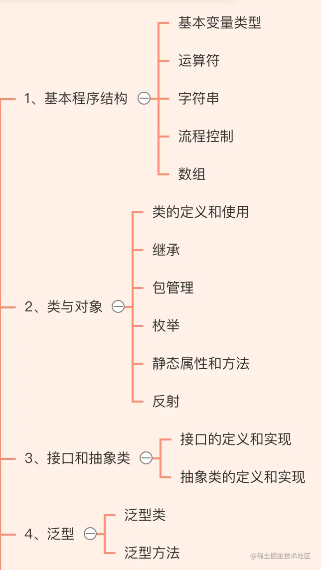 学习基本知识,就是让你对Java语言有一个初步的了解。话又说回来,基础知识是学习一门编程语言的必备条件,而且大部分语言的基础知识都是大同小异,包含基本的数据类型、程序结构等等。如果是Java这类面向对象的,那么还得掌握面向对象的知识,面向对象是重中之重,面向对象是重中之重,面向对象是重中之重,重要的事情说三遍。只有掌握面向对象的知识,在后续的开发中才会有更好的成长。