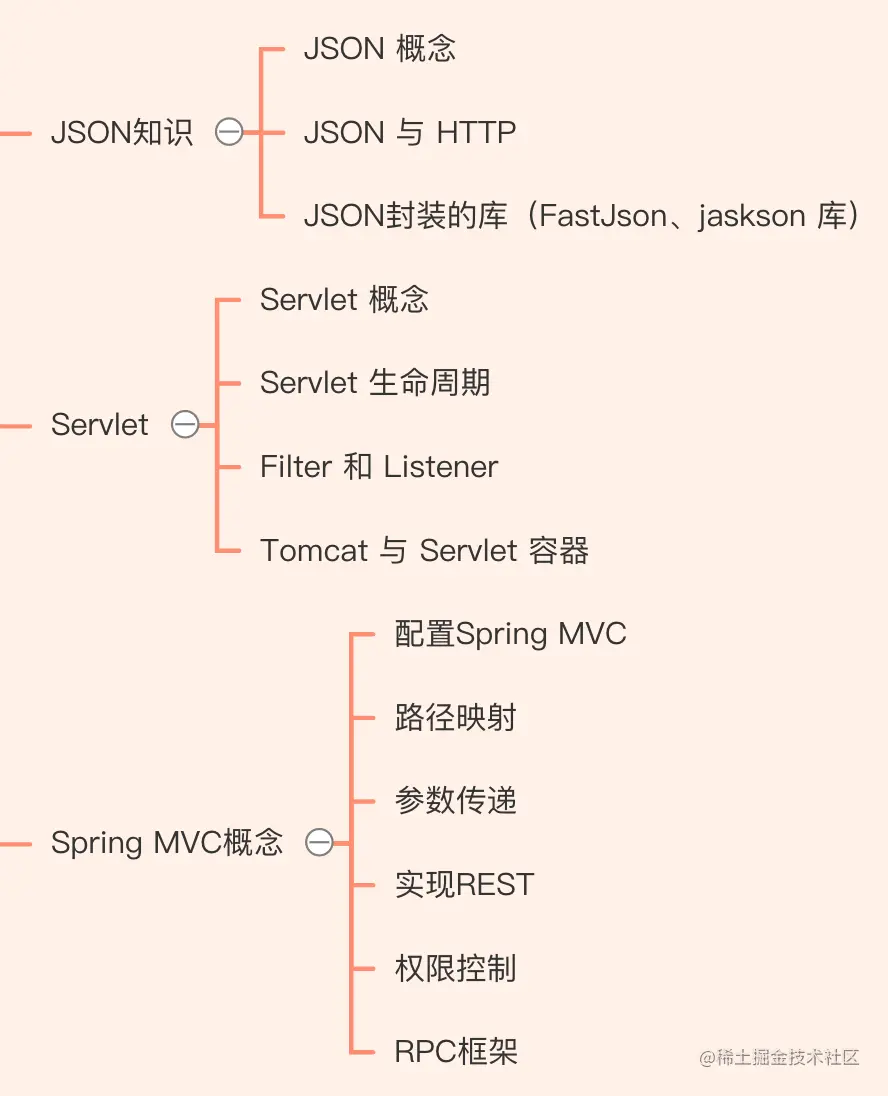 - Spring MVC概念:配置Spring MVC、路径映射、参数传递、实现REST、权限控制等