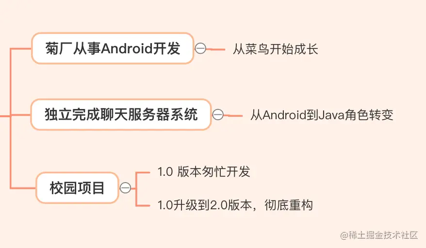 我到公司的时候是 Android 开发,因为当时项目组有3个 Android,没有 Java,领导在征求大家的建议,问有没有想转的,我分析了自己的情况之后,主动要求转 Java,和老大一起去做这个即时通信框架。