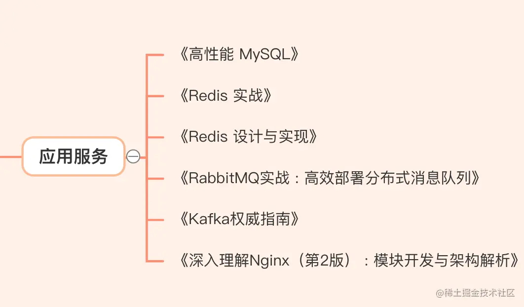 应用服务这一块,涵盖了很多领域,包括持久化、缓存、队列、反向代理等,这些是完善一个程序的重中之重。前面的那几个知识属于基础框架,那么中间件就是给框架里填充一些增强的部分,让程序健壮稳定。想必大家平时练手之类的遇到频率很高的项目就是电商类的项目,比如电商类中的秒杀就用了redis缓存知识。