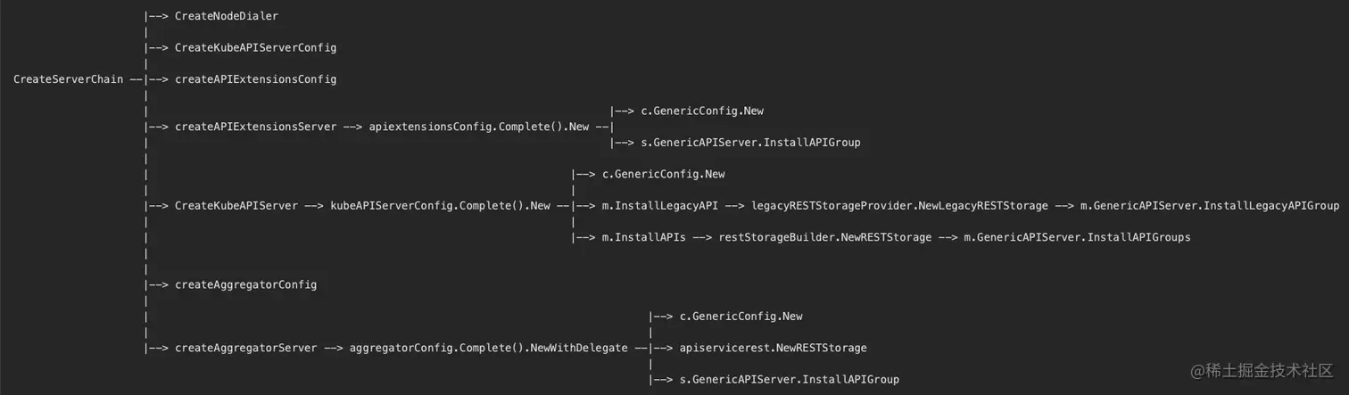 另外,kubeAPIServer是整个Kubernetes apiserver的核心,下面将要讲述的aggregatorServer以及apiExtensionsServer都是建立在kubeAPIServer基础上进行扩展的(补充了Kubernetes对用户自定义资源的能力支持)