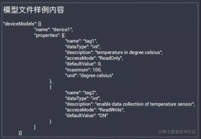 下图为部分配置文件,包括设备的名称、属性、name、data type、Description等。