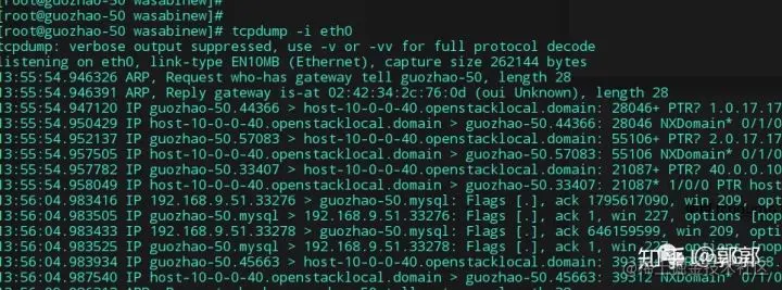 使用tcpdump命令对eth0网卡抓包