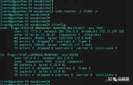 接下来通过nsenter命令进入容器进程的网络命名空间。