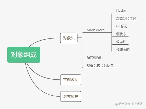 对象头就像我们人的身份证一样,存放了一些标识对象的数据,也就是对象的一些元数据,我们首先看一下对象的构成。