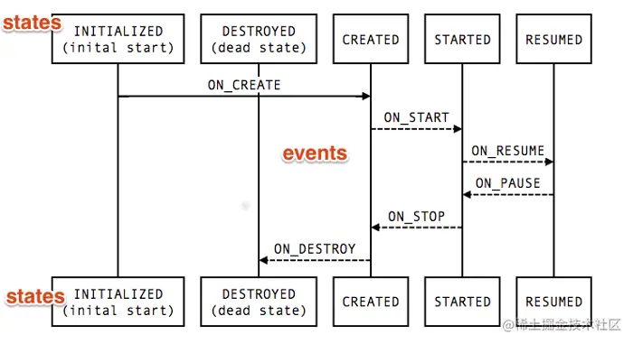 * 通过调用 lifecycle.currentState,它返回的生命周期状态是一个枚举类型。