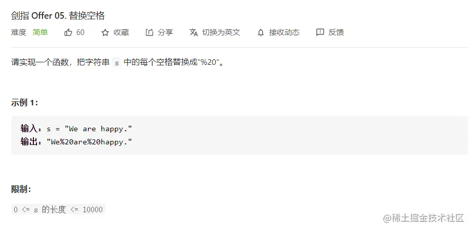 StringBuilder动态拼接字符串。遍历给定的字符串,如果是空格,拼接目标字符串,否则拼接当前遍历的字符串元素; - 方法 3:声明一个是给定字符串长度三倍的字符数组。按照题目要求动态填充字符数组就行。注意字符串还有