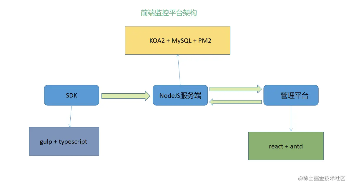 使用TypeScript开发保证代码规范,采用gulp做为代码打包压缩工具,代码构建后上传至 npm 供前端业务使用。