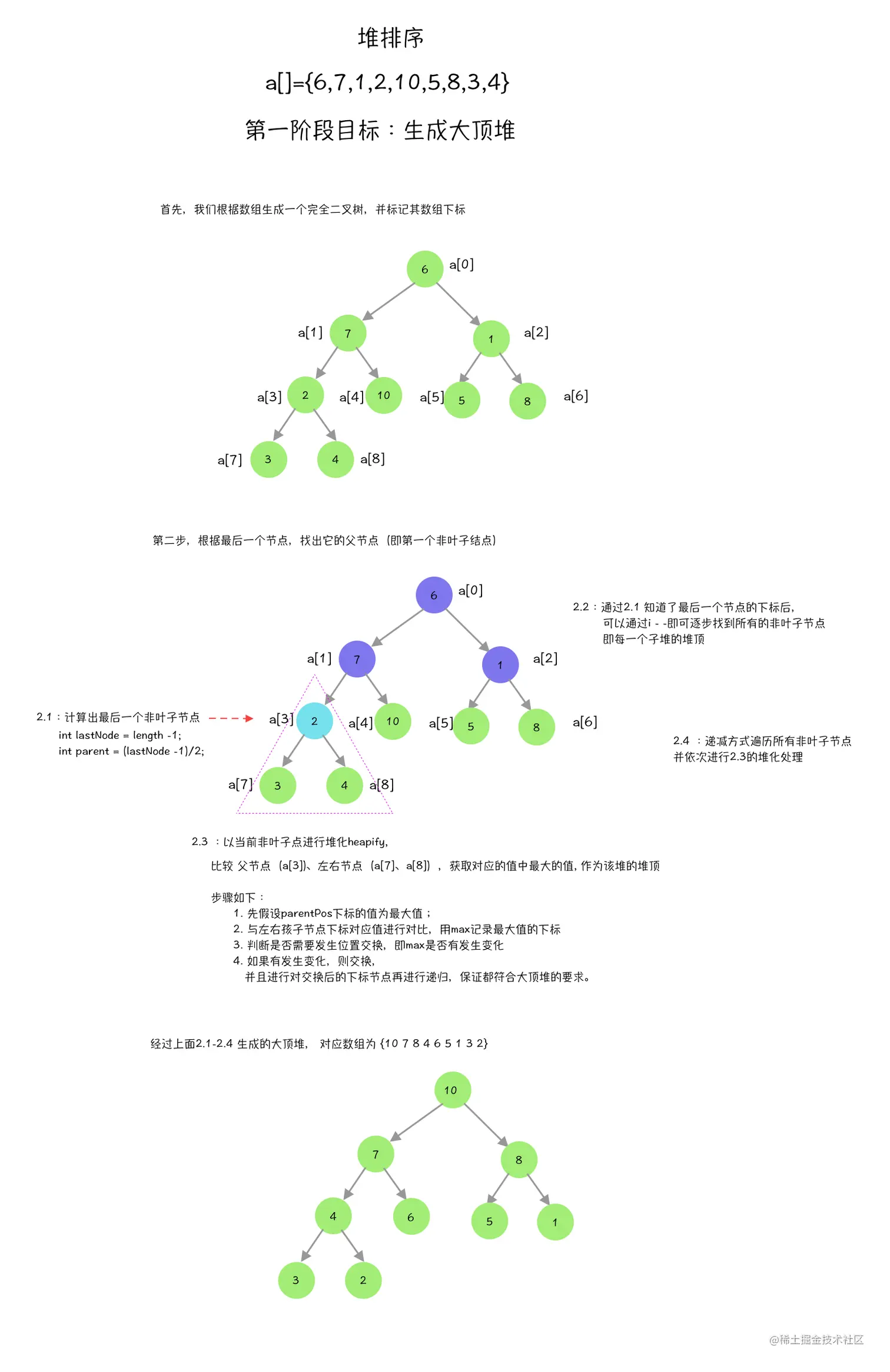 首先来构建一个大顶堆,为了更好的理解,我们画图来一步一步的拆解流程