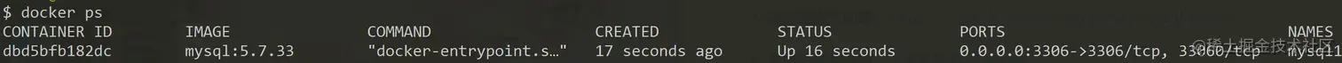 搜索 docker mysql进入它的GitHub主页,选择一个版本,比如5.7.33。使用docker run命令启动一个容器。