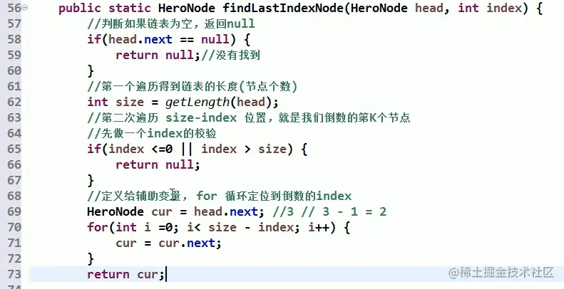 思路:把链表从头到尾遍历,得到链表总长度(size),然后从第一个遍历到 size-k 个