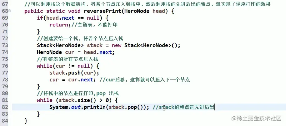 思路: 利用栈结构,将各个节点压入到栈(先进后出)中,然后将其取出,即实现从尾到头打印