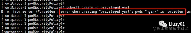 在开启PodSecurityPolicy准入控制器后,k8s默认不允许创建任何Pod,需要创建PodSecurityPolicy和RBAC授权策略,Pod才能创建成功。
