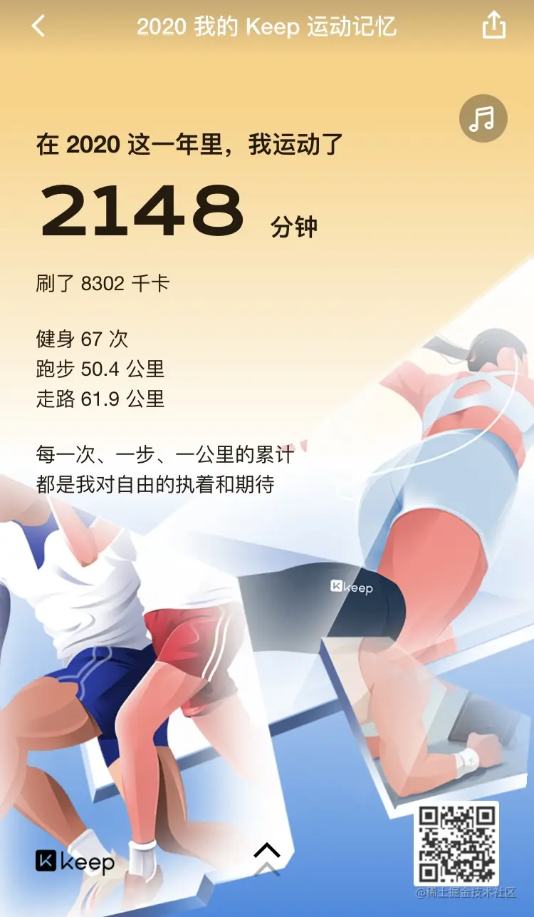 工作之后健身也只坚持了一个月,2021 年要继续坚持。不过倒是有段时间每天上下班骑车锻炼了身体。