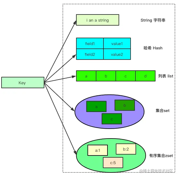 sdiff set1 set2 set3 -> {a} // 差集, 第一个集合减去后面集合的并集