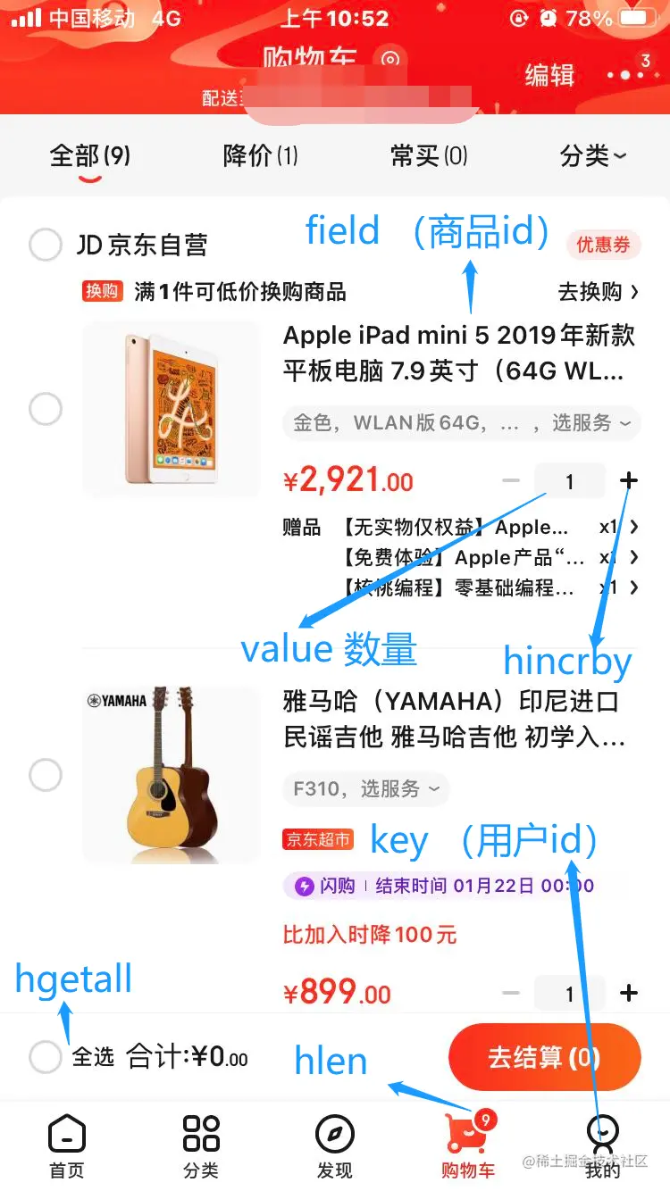 hincrby key field increment // 为哈希表 key 中 field 键的值增量 increment