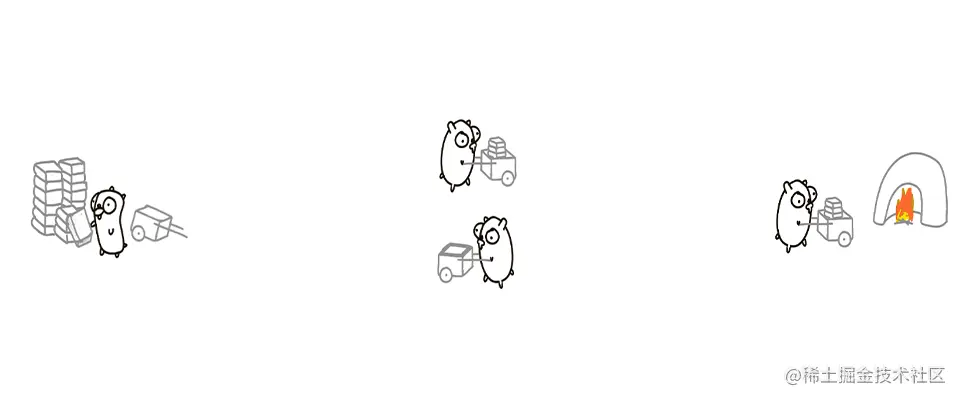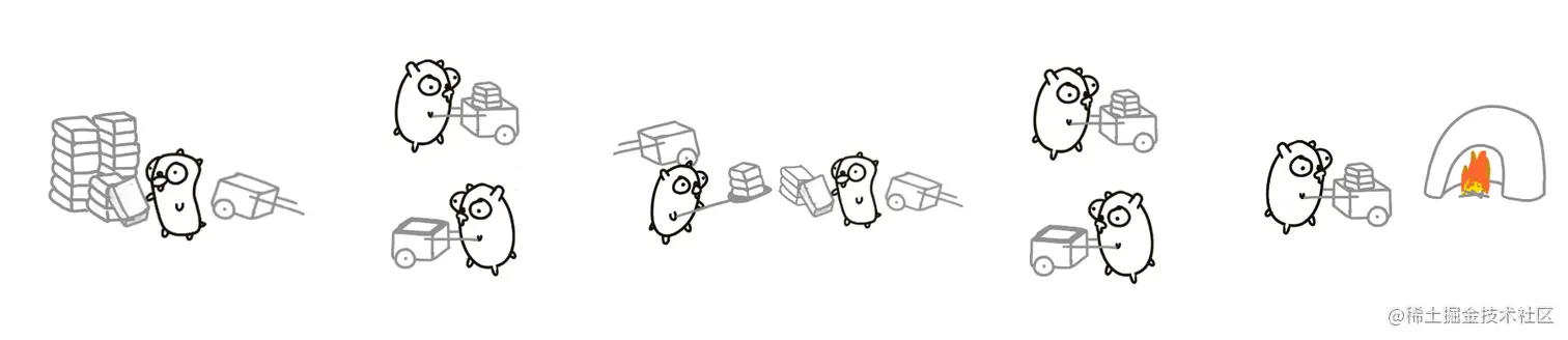 重点:并发是一种程序结构设计的方法,它使得并行成为可能。不过这依然很抽象,我们这里也借用 Rob Pike 分享中的那个“搬运书问题”来重新诠释一下并发的含义。搬运书问题要求设计一个方案,使得 gopher 能更快地将一堆废弃的语言手册搬到垃圾回收场烧掉。