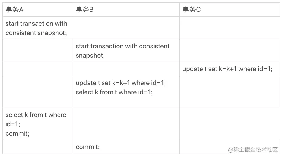 数据表中的一行记录,其实可能有多个版本 (row),每个版本有自己的 row trx_id。