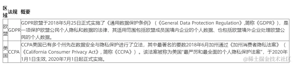 从规范的关联性我们可以知道,为了满足或支持企业和供应链在保护数据、机密信息、知识产权和隐私方面的需求,参考了目前业界主要的法规或标准中与数据保护相关的部分,并把这些条例、规则或内容,映射成了一个可以通过工具检测的软件弱点(CWE),从而实现对数据保护可实施的自动检测措施。下边我们对这些涉及的法规或规范做个介绍。