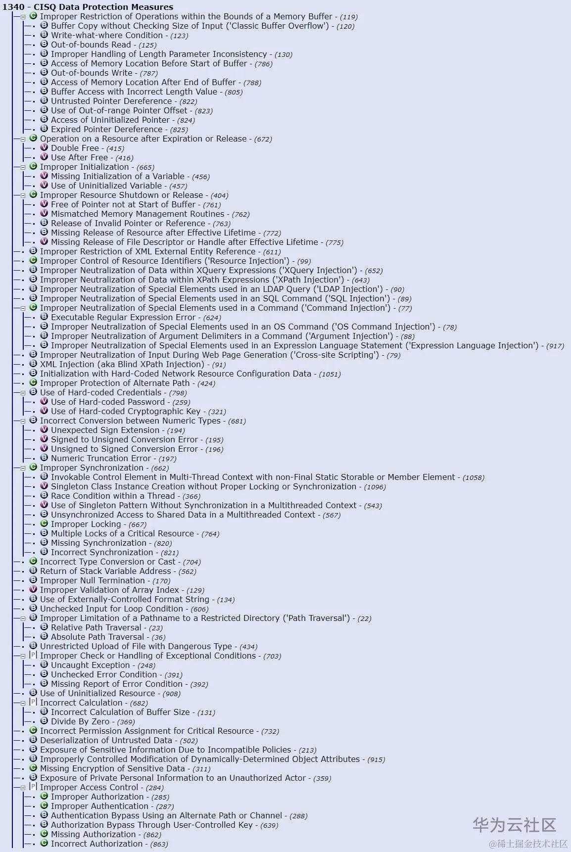 - CWE-1340 CISQ 数据保护检测视图的节点分类信息汇总: