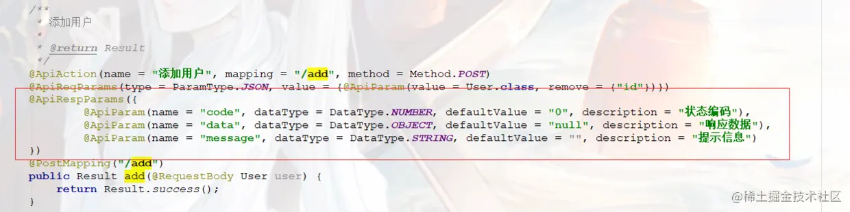 - ApiParam: 该参数等同于请求参数中的ApiParam,参考如上描述