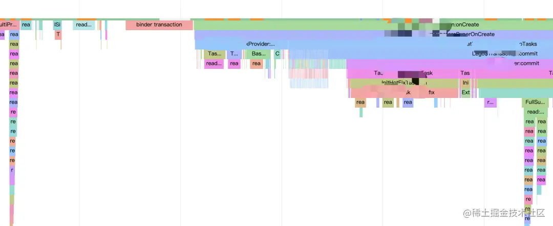 Rhea 当前因其无侵入、高性能、信息全等优势已在字节多个 APP 上落地使用,效果明显,已多次帮助大家快速发现性能问题,其包含的信息包括不限层级的应用层函数、IO、锁、Binder、CPU 调度等耗时信息等,其部分效果如下所示: