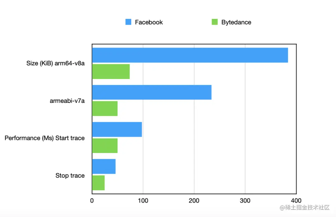 由于 App 侧抓取 Trace 的实现要依赖于 hook,我们参考了 Facebook Profilo 的实现,但其实现存在动态库过大、启停 Trace 耗时问题,因此我们进一步优化了 App 本地获取 atrace 依赖的动态库大小和性能。如下所示: