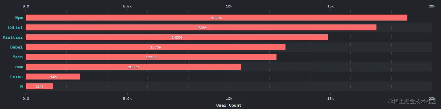 根据上图可知,第一名:Npm、第二名:ESLint、第三名:Prettier。