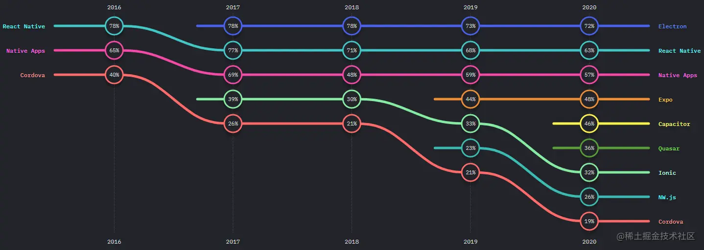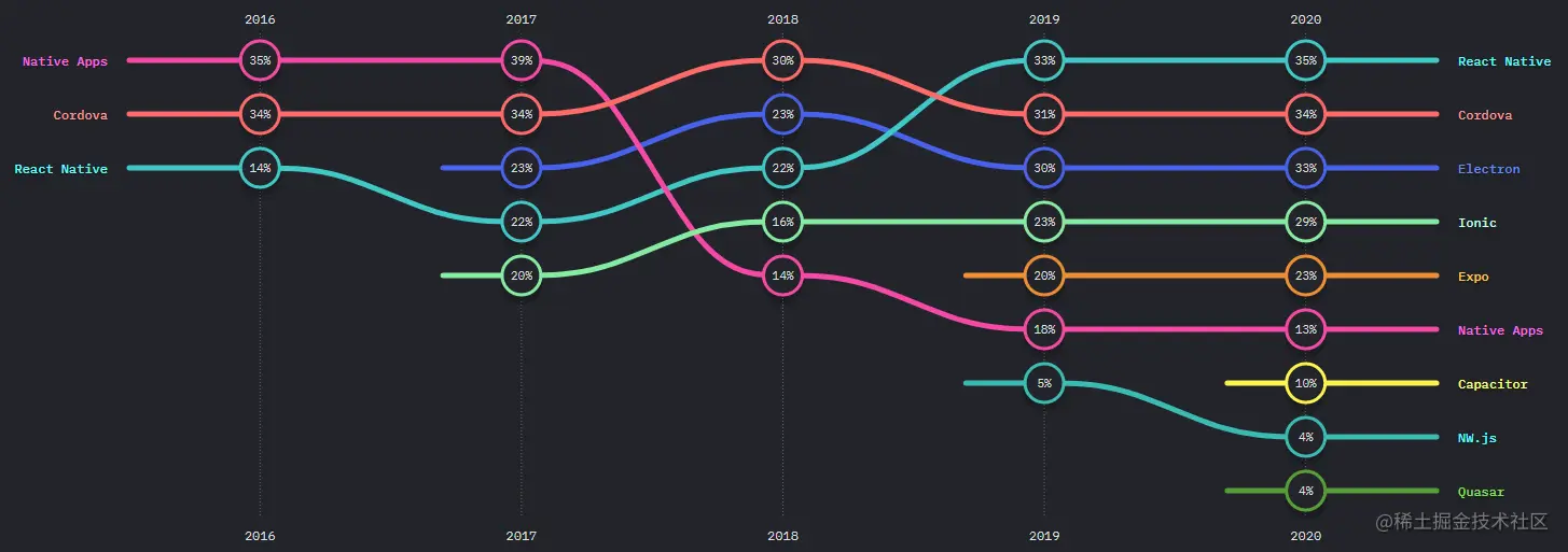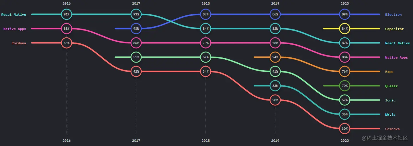根据上图可知,第一名:Electron、第二名:React Native、第三名:Native Apps。